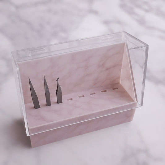 8-Slot Marble Acrylic Tweezer Holder with Dust-Proof Cover
